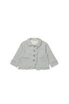 Jacket with logo and ruffled trim. A design featuring patch pockets and front buttons for a delicate style.