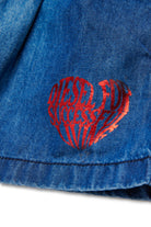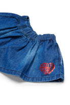 Denim shorts with printed logo and flared, relaxed fit.