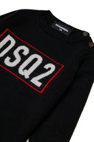 Long-sleeved short dress in soft merino wool with logo jacquard DSQ2 on the front. Wrap-around and warm, it is ideal for facing the cold months with a touch of style.