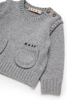 Long-sleeved crew-neck pullover in wool-blend knit, a warm and comfortable garment. Front patch pockets add an original and distinctive touch, making it perfect for various occasions.