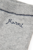 Wool-blend knit-cashmere jogger pants with ribbed waist and bottom. They feature a contrasting embroidered Cursive Marni logo on the front.