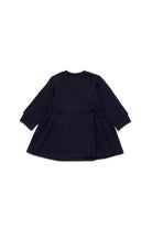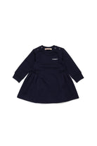 Fleece midi dress with flounces on the hips, giving movement and a delicate ruffled effect at the sides. A garment with a contemporary design, enriched by the heart-side printed logo.