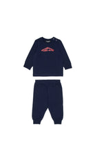 Stretch jersey cotton tracksuit. Personalised with contrasting ICON new generation logo. Long-sleeved crew-neck sweater with practical button fastening at the shoulder. Trousers with elasticated waist and ankles. Comes with branded bag. Perfect for everyday outfits and less formal occasions.