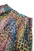 - Multicolored animal print and logo at the hem