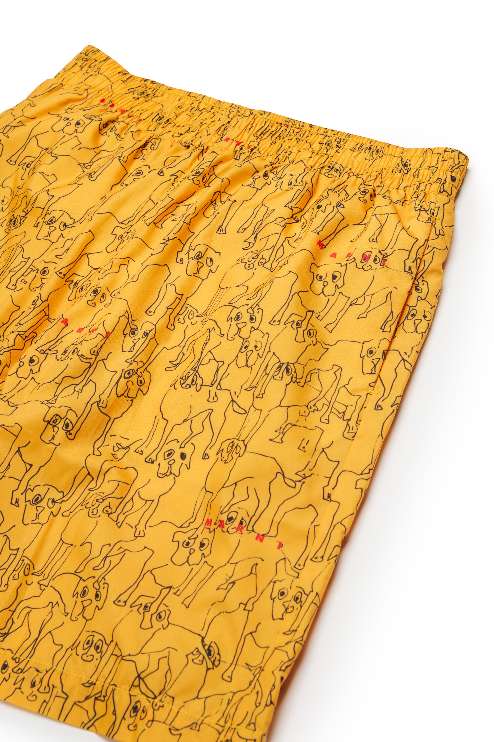 Nylon boxer swimming costume featuring an all-over print Joy. Midi length. Elastic waistband. Inner briefs. Front welt pockets and small pocket on the back.Any differences between the photographed garment and the one you will receive are a symbol of the fine workmanship, quality and uniqueness of the product.