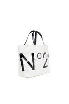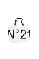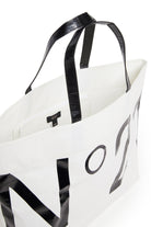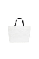 Tote bag with printed logo and contrasting handles for a contemporary design.