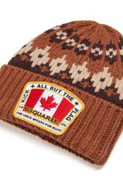 Norwegian-patterned wool-blend beanie. A warm and enveloping accessory, worked with chunky yarn and embellished with a Canada-inspired patch, a clear reference to the roots of the Dsquared2 world.