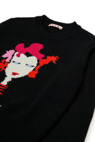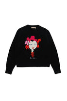 Long-sleeved crew-neck wool-blend knit pullover embellished with Marni Flower graphics made of inlays and accompanied by the Marni logo. A warm and comfortable garment, perfect for standing out in style.