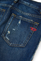 2020 D-Viker regular fit jeans in dark blue denim with a destroyed effect with a timeless attitude. A straight-cut regular fit model all the way down the leg. A jeans with ripped details perfect for an uncompromising urban look.