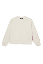 Long-sleeved crew-neck sweatshirt in corduroy. The soft and refined texture combines with the character of the Dsquared2 logo applied as a maxi-flag on the side for an original and trendy look.