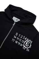 Full zip hooded sweatshirt with hood and long sleeves. The contrasting Hand Written logo plucked effect, positioned heart side, expresses the MM6 DNA with an essential and distinctive aesthetic. Perfect for a casual look with an authentic touch.