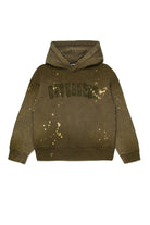 Vintage-effect long-sleeved hooded sweatshirt. Irregular color spots and an intentionally ruined Dsquared2 logo express an urban, gritty aesthetic perfect for those who like to stand out with character.