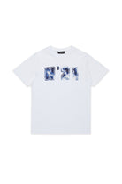 Soft cotton jersey T-shirt with short-sleeved sleeves. The N°21 branded college-style logo is reinterpreted with tie-dye effect gradients that give the garment a contemporary feel.