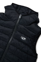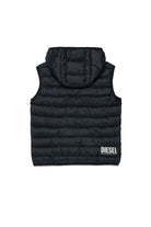Padded vest with printed logo, sleeveless design, and hood. A practical piece with clean lines, perfect for completing any outfit.