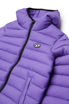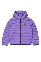 Padded jacket with printed logo and fixed hood. The quilted design enhances the contemporary look.