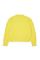 Crew neck pullover in 100% cotton featuring a cable knit design and an applied pocket with a maxi patch-effect logo on the chest.