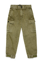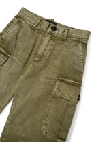 Vintage-effect stretch gabardine cargo pants. A garment with a strong character, with spots of color and the deliberately ruined Dsquared2 logo, perfect for standing out.