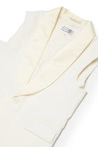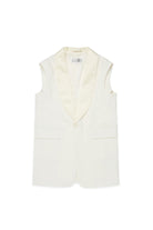 Vest with logo and iconic stitching on the back, featuring a shawl lapel and welt pockets. Essential design in a wool-blend fabric for a refined style.