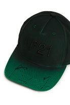 Baseball cap with a curved brim and embroidered logo on the front. The design features distressed details and an adjustable closure at the back.