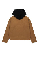 Wool-blend sweater with contrasting color hooded sweatshirt. The rib construction of the body combines with the sporty attitude of the hood, creating a balance between comfort and casual style.
