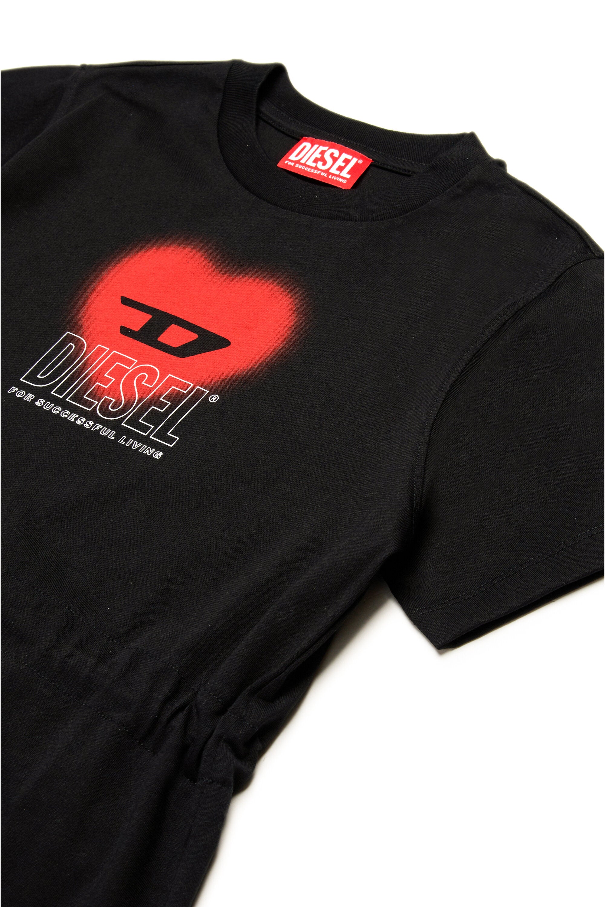 Crew-neck short-sleeved jersey dress. Drawstring waist. Featuring a heart-shaped gradient graphic on the front with reserved D and the DIESEL For Successful Living logo. Made of 100% cotton.
