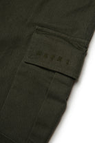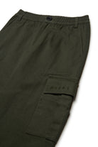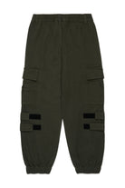 Washed gabardine cargo pants with color tone embroidered institutional logo on the side pocket. The design is enhanced by straps on the calf that allow the leg width to be adjusted. Ideal for creating original casual looks.