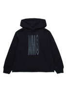Long-sleeved hooded sweatshirt. Institutional logo printed in color tone on the front. Raw cut hem at bottom. Iconic seam on the back. Ribbed cuffs construction.