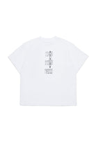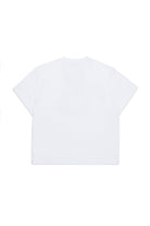 Short-sleeved crew-neck T-shirt in jersey. Stretched Logo in contrasting color on the front. Iconic seam on the back. Made of 100% cotton.
