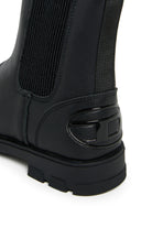 Leather D-Hammer Elastic boots, a formal reinterpretation of the classic chunky boot in the Diesel style. Perfect for parties and special occasions.