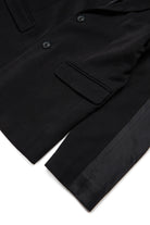 Long-sleeved formal blazer jacket. Bi-material construction of cool wool on the front and triacetate on the back with raw cut hems along the seams. Iconic Oval D logo embroidered in tone on the lapel. Single-breasted front button closure. Front flap pockets. Viscose inner lining. A perfect garment for ceremonies and special occasions.