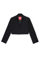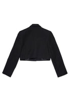Cropped blazer jacket in cool wool. A boxy single-breasted style with a hidden two-button closure that enhances the design. Perfect for the most special occasions.