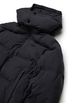 Short padded jacket with matte finish, perfect for tackling colder days in style and practicality. Horizontal quilting provides warmth and comfort, while the zip closure and elastic at the bottom ensure a snug fit.
