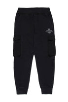 Fleece cargo pants. Elastic at waist and ankle. Maple Leaf tone-in-tone rubber effect logo on the front. Front slash pockets. Gabardine side pockets. Made of 100% cotton.