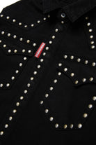Long-sleeved shirt in black denim. Front-to-back applied studs along the seams turn this shirt into a sought-after, statement piece.