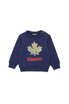Long-sleeved crew-neck sweatshirt with logo Sport where the Canadian Maple Leaf, an iconic symbol of the Dsquared2 universe, is reinterpreted with a flocked finish with a ruined effect. A garment that combines style and practicality.