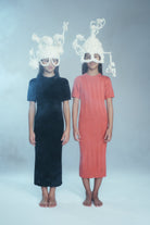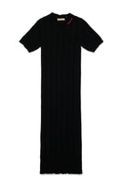 Long dress in soft rib knit wool blend. Localized breaks on the collar, sleeves and bottom give it a worn and authentic effect. Perfect for those who like a modern aesthetic with sophisticated details, even for special occasions.
