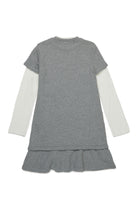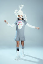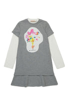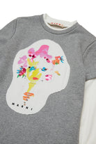 Short fleece dress with t-shirt effect sleeves and flounces at the bottom. A garment that knows how to get noticed thanks to the embroidered Marni Flower patch and sequins that catch the light with every movement.