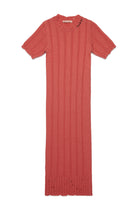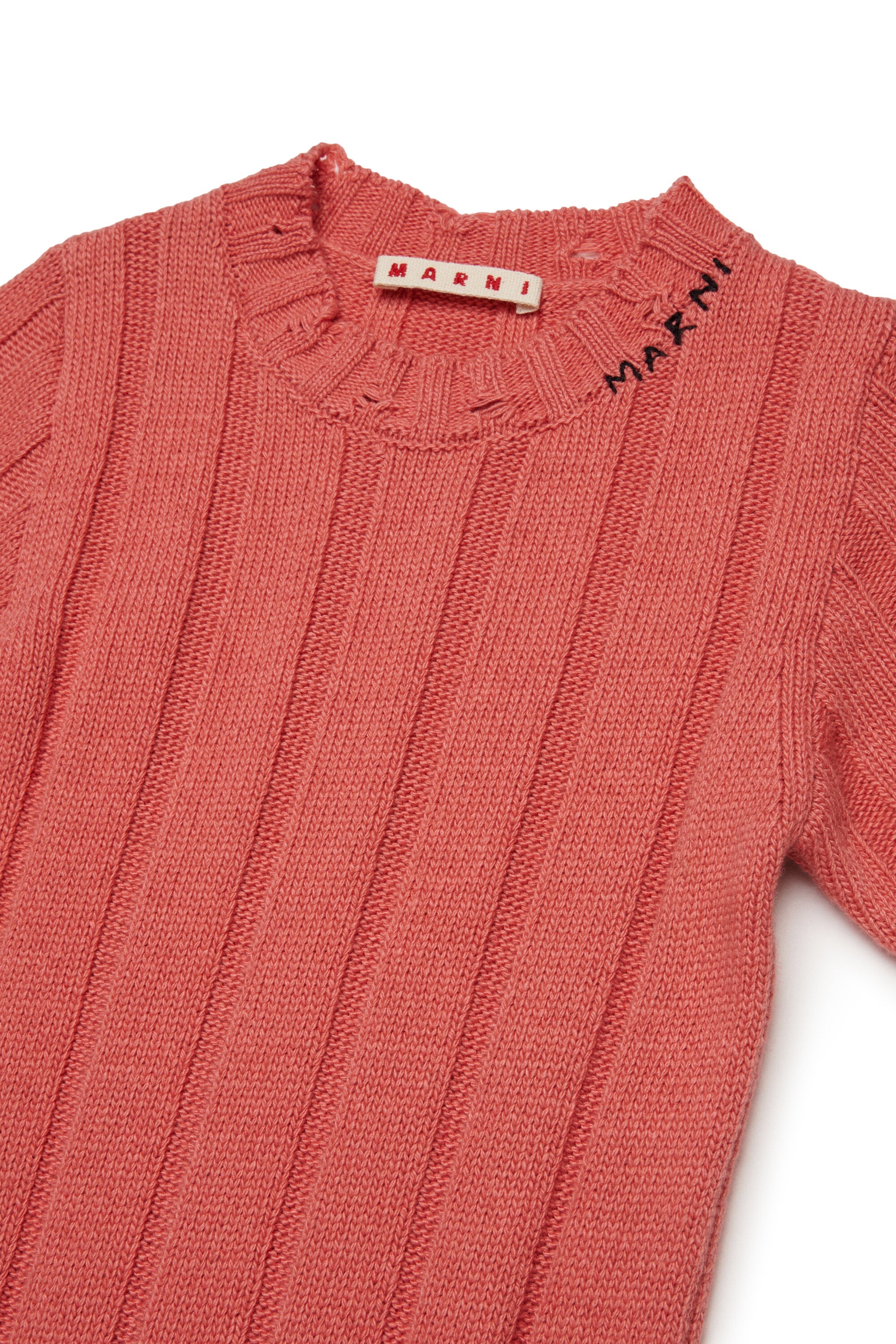 Long dress in soft rib knit wool blend. Localized breaks on the collar, sleeves and bottom give it a worn and authentic effect. Perfect for those who like a modern aesthetic with sophisticated details, even for special occasions.