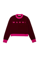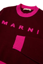 Crew-neck, long-sleeved, wool-blend cashmere sweater with ribbed colorblock cuffs, hem and collar. Features a contrasting Marni Institutional logo on the front.A stylish touch suitable for the most special occasions.