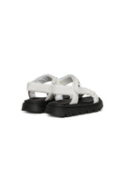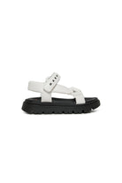 Platform sandals with a modern design. They feature an institutional logo printed in contrasting colour on the belt. Sole with thermoplastic rubber platform. Made in Italy.