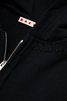 Long-sleeved hooded sweatshirt with raw edge detailing at mid-sleeve adds a modern and original touch. Marni raw edge logo near the neck completes the design with a distinctive accent.
