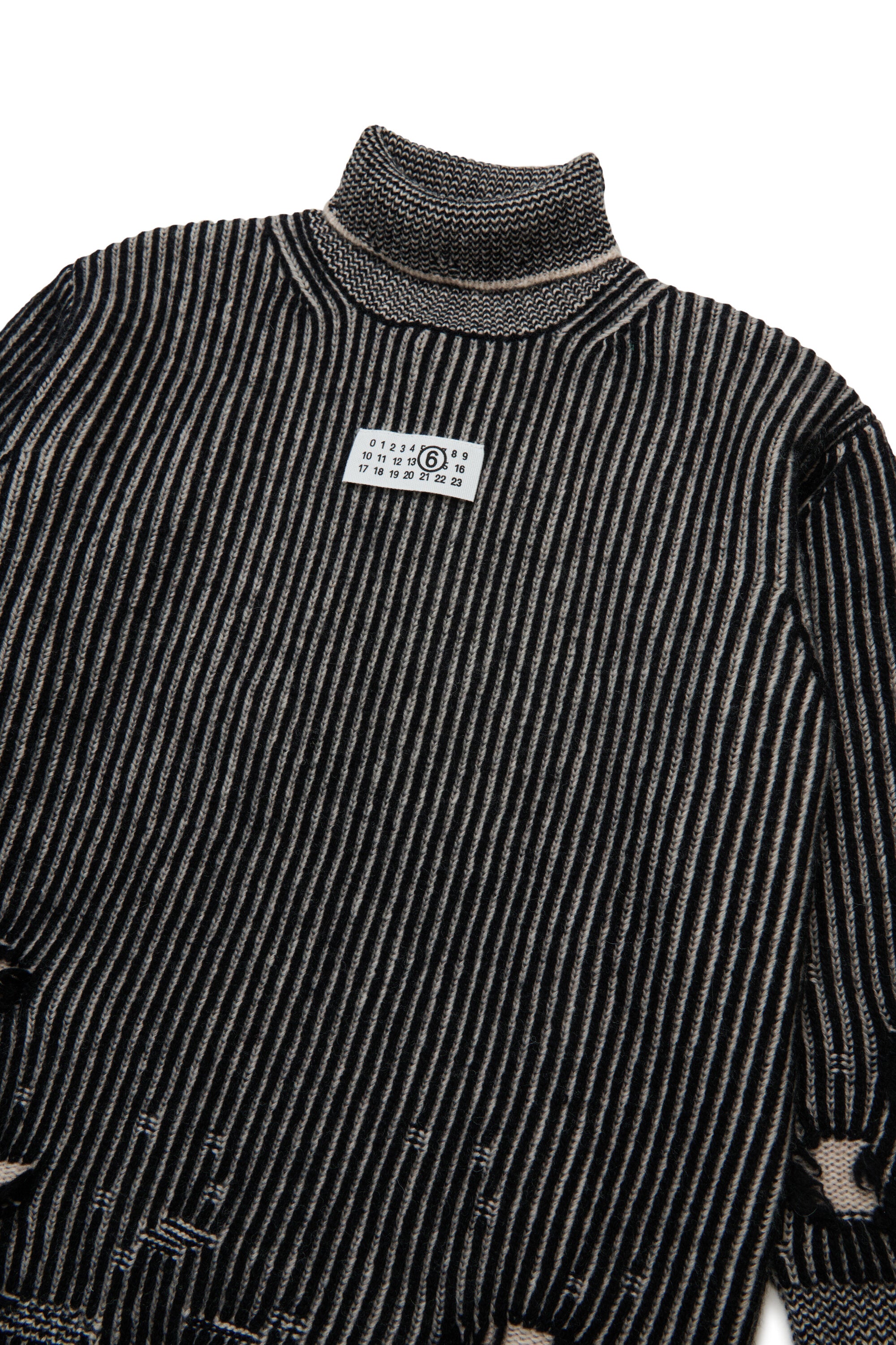 High-neck mini dress in two-tone rib wool, soft and warm. Mending breaks give an authentic lived-in effect, perfect for those looking for a refined, characterful look that won't go unnoticed.