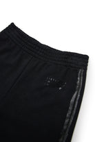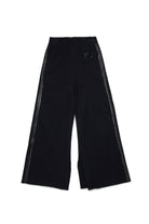 Fleece pants embellished with hand-applied glossy plucking on the sides. A handcrafted detail that gives the garment an original look, along with the characteristic splits on the bottom.