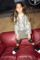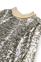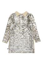Wool-blend shaved knit mini dress with silver sequins. A garment with retro taste, enriched by a 1950s collar that adds charm and originality. Ideal for parties and special occasions.