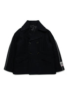 Double-breasted peacoat in wool-blend cloth, lightly padded to provide extra warmth and comfort. The side band on the sleeves adds a stylish detail to a garment with a modern look, ideal for tackling the winter season.