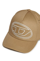 Baseball cap in gabardine. Features the Iconic Oval D logo in a maxi version embroidered in contrasting color on the front. Adjustable strap closure branded with DIESEL logo on the back. Made of 100% cotton.