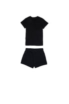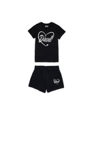 Short jumpsuit with logo and graphic heart print on the t-shirt paired with matching shorts, perfect for a vibrant look.