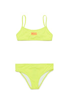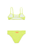 Fluo Lycra bikini swimsuit with shoulder straps. Personalised with Diesel For Successful Living institutional logo in contrasting colour. Adjustable lacing.