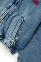 Denim jacket with logo and contrasting details on the sleeves for a sporty, contemporary style.