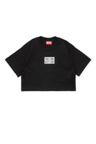 100% cotton logo T-shirt with a cropped cut, enhanced by a front patch that adds a distinctive touch.